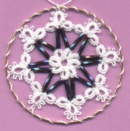 | These tatted ornaments evolved from a fascination with bugle beads, seed beads and a stash of bangle bracelets bought because I just knew I could use them someday! | ![]() |