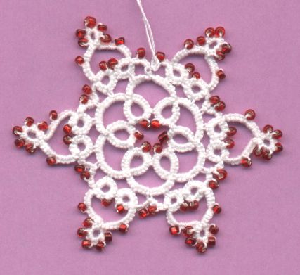 | Same as previous snowflake but with beads on all the picots. | ||||||||||||||